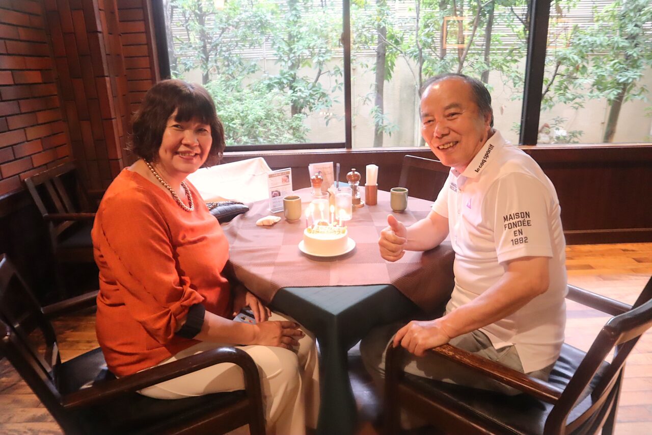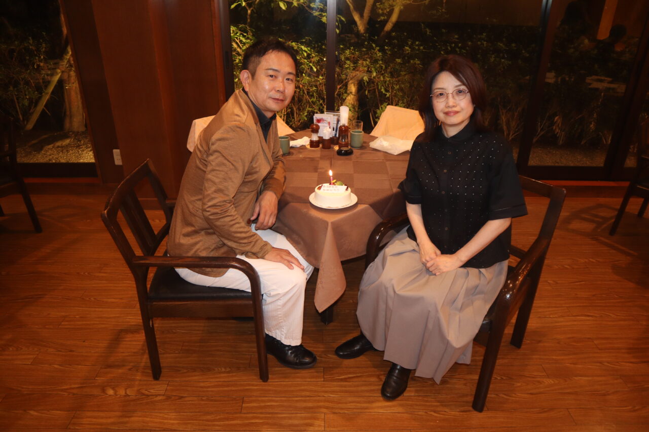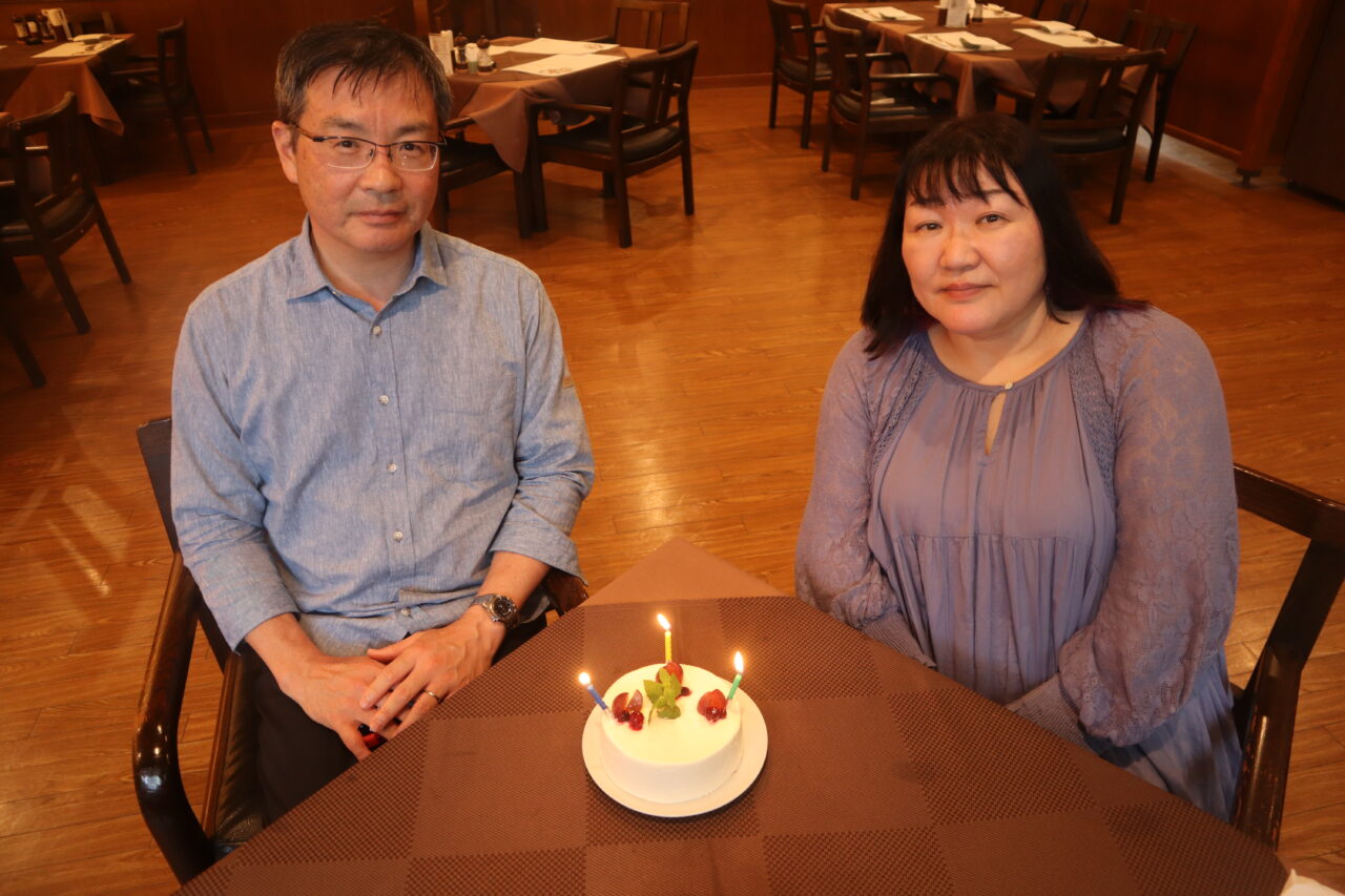 本日お誕生日のお祝いをさせていただいたご夫婦様。